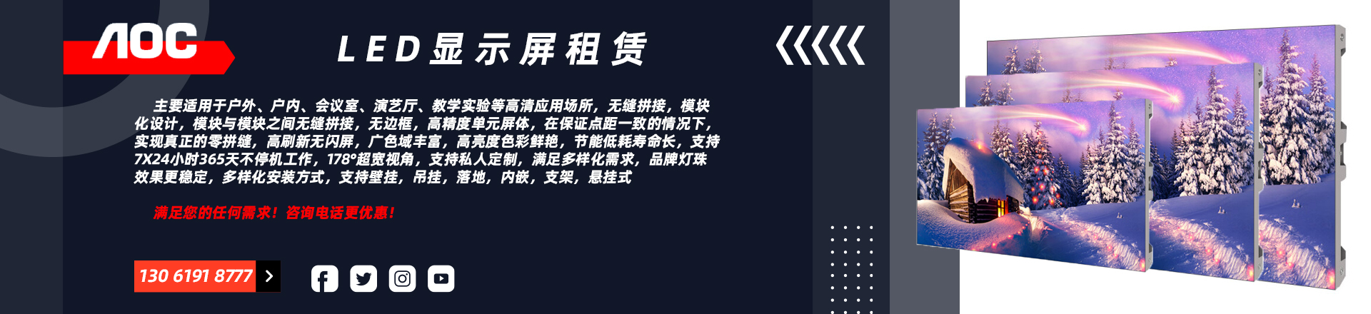 AOC P3 室內(nèi)全彩led顯示屏 無(wú)縫拼接 舞臺(tái) 會(huì)議室 展廳 商場(chǎng) 廣場(chǎng) 戶外廣告電子屏 商用辦公大屏幕